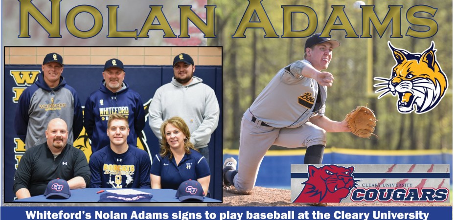 Adams, a Bobcat senior, signed a letter-of-intent on Thursday to play baseball at Cleary, an NAIA school based in Howell, Michigan.