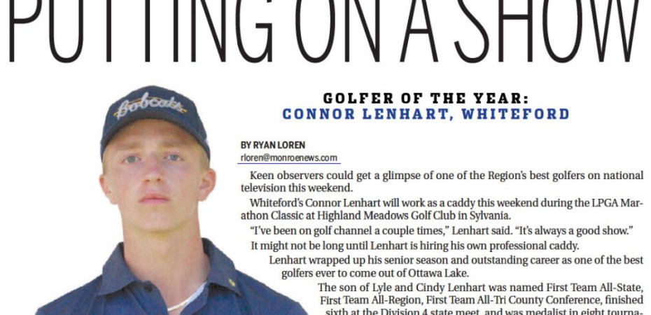 Whiteford’s Connor Lenhart was named the Monroe County Region Golfer of the Year today by The Monroe News.