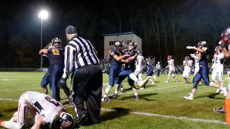 Devon Shaw’s 6-yard scoring run with 5:16 left in the fourth quarter put Whiteford up 34-20. BD charged back quickly, however, as Patriot quarterback Nico Johnson found Cole Shiels on a 34-yard pass play. Shiels made a great play to pull in the two-point conversion to pull BD within 34-28.