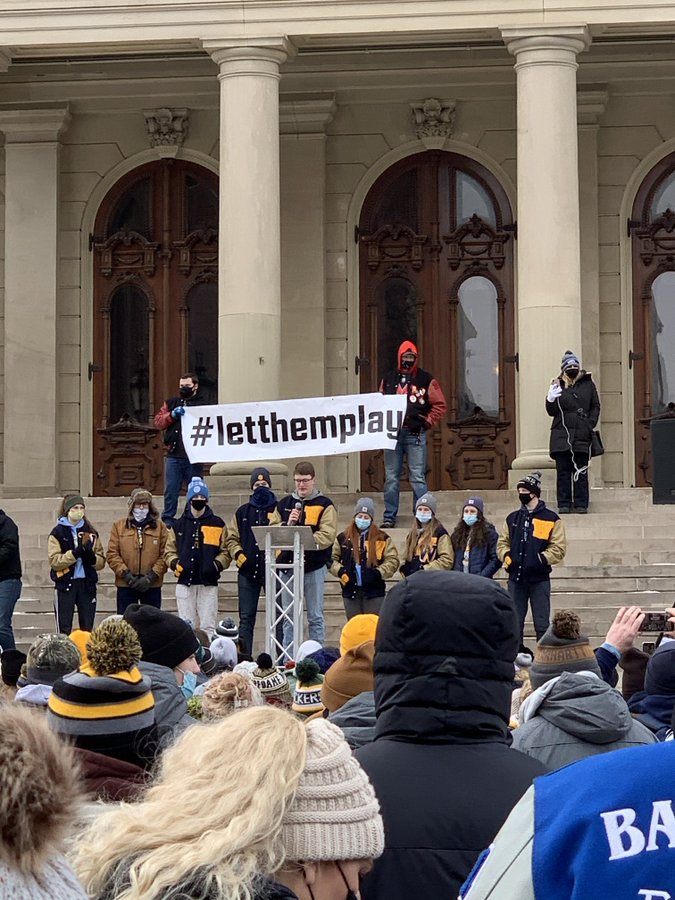LANSING – Whiteford high school students and parents made a strong reprensentation Saturday at the #LetThemPlayMI rally on the steps of the Michigan State Capitol building.