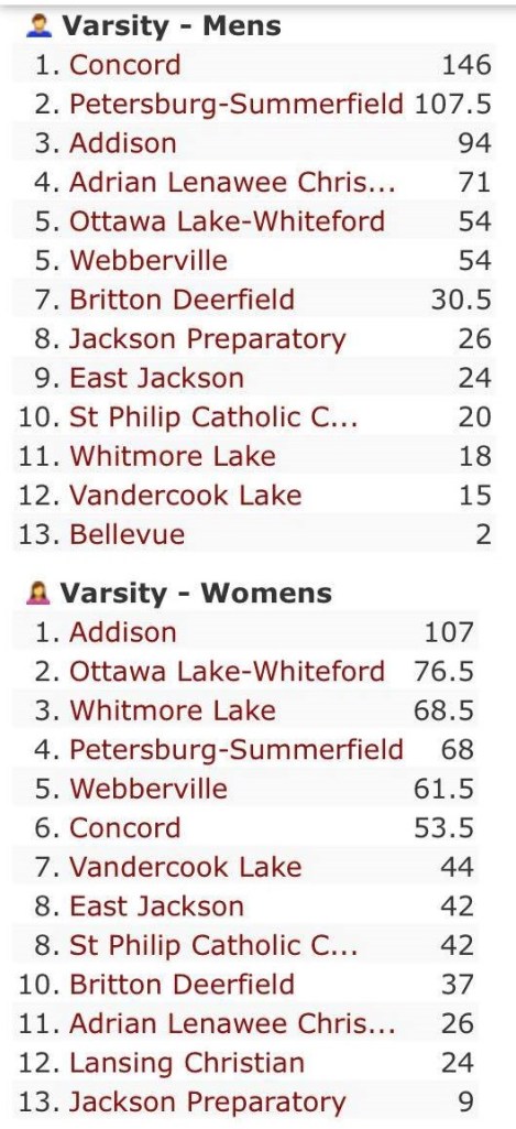 Whiteford’s boys were fifth overall.
