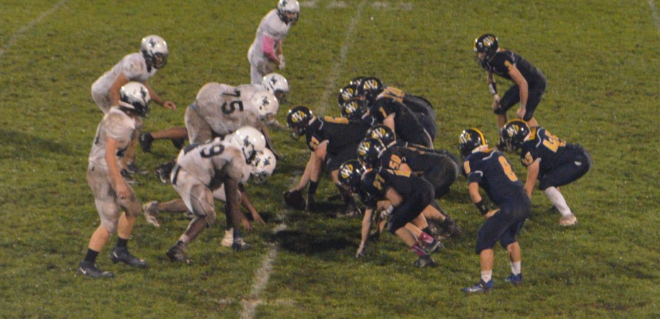 The start of the game was delayed for about an hour due to lightning that struck just before the Whiteford band started playing the National Anthem, sending both teams to shelter.