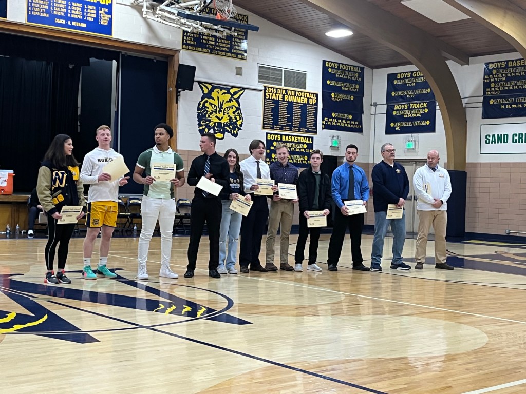 Inducted were (left to right): Aly VanBrandt, Shea Ruddy, Seamus Waterford, Brayden Luse, Madelyn Thomas, Dylan Anderson, Ty Ruddy, Ryan Oberle, Shane Suchora, Bob Ondrovick and Todd Thieken.