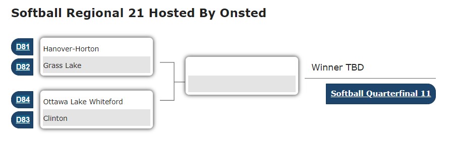 Grass Lake and Hanover-Horton open regional play at 10 a.m. with the Bobcats and Clinton to follow. The finals are at approximately 2 p.m.