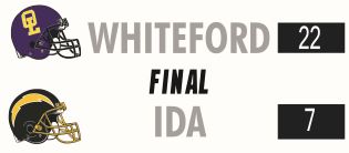 PASSING – Ida: Owen Snyder 6-12-3 103 yards. Whiteford: Tre Eitniear 2-3-1 39 yards.